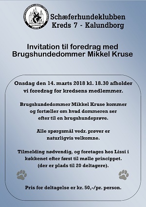 Alle medlemmer af Schæferhundeklubben for Danmark tilknyttet kreds 7 er velkomne.